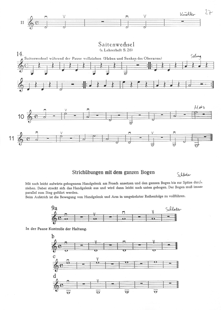 geraden Bogenstrich. Das Kind erlernt so das
