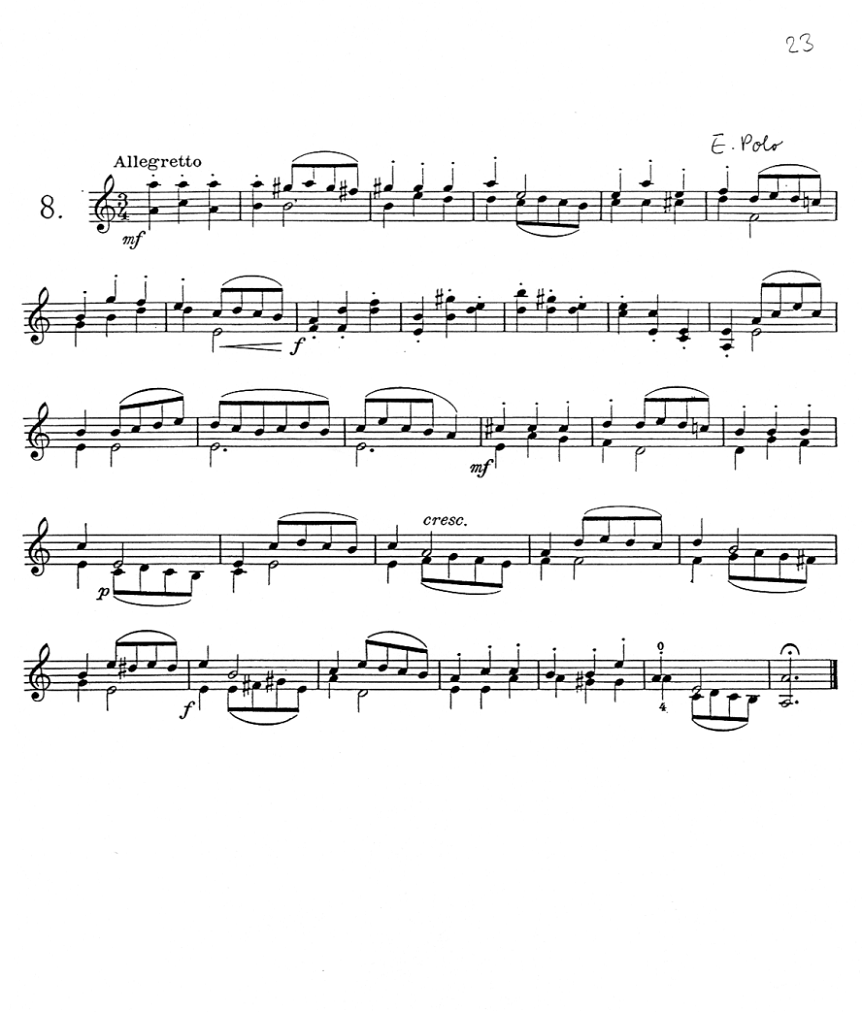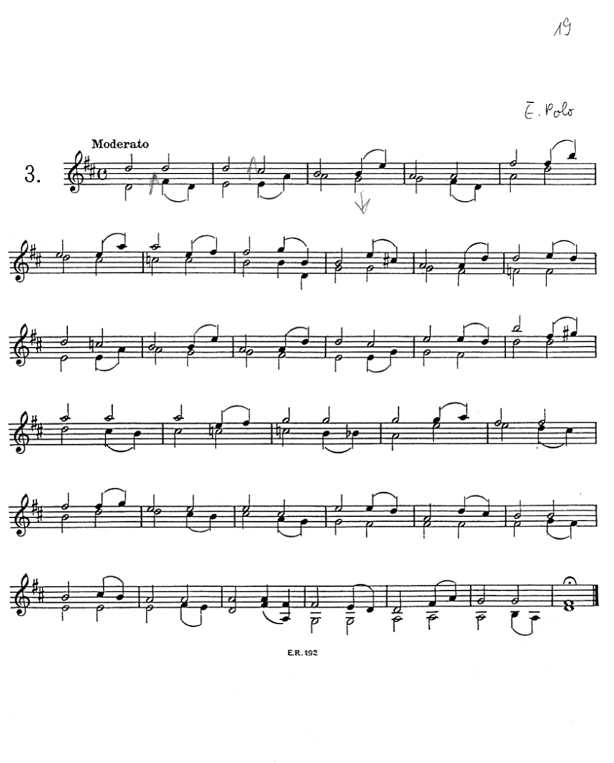 Nr. 3 (Moderato) von E. Polo, mit Fingerwechseln