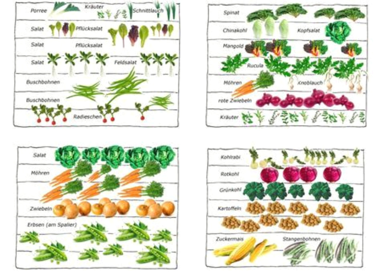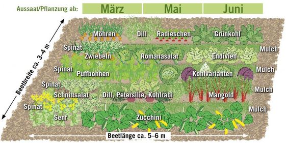 [4] Gemüsebeet mit Mischkultur, Schema 03: https://www.pinterest.de/pin/496662665142307910/