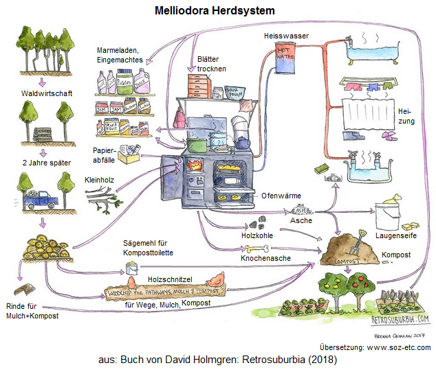 [13] Melliodora Ofensystem mit Heisswasserproduktion: https://www.milkwood.net/2018/02/27/retrosuburbia-the-downshifters-guide-to-a-resilient-future/