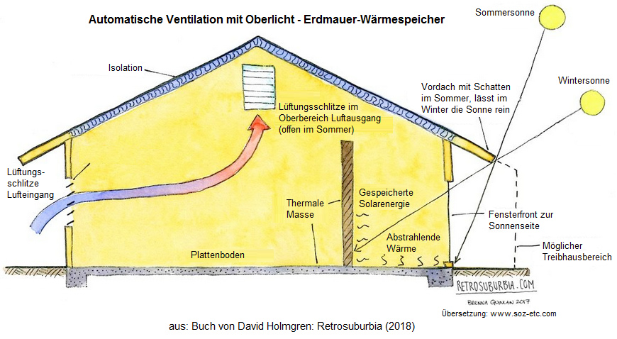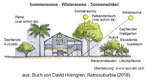 [19] David Holmgren "Retrosuburbia" 2018: Architektur, die den Sonnenwinkel im Sommer und im Winter berücksichtigt: