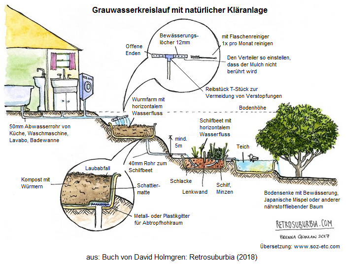 [16] David Holmgren "Retrosuburbia", Architektur: Grauwasserreinigung für Regionen ohne harten Winter: