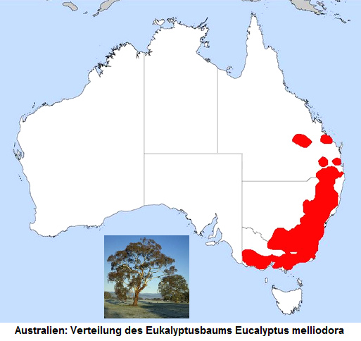 Verbreitungsgebiet des Eukalyptusbaums Eucalyptus