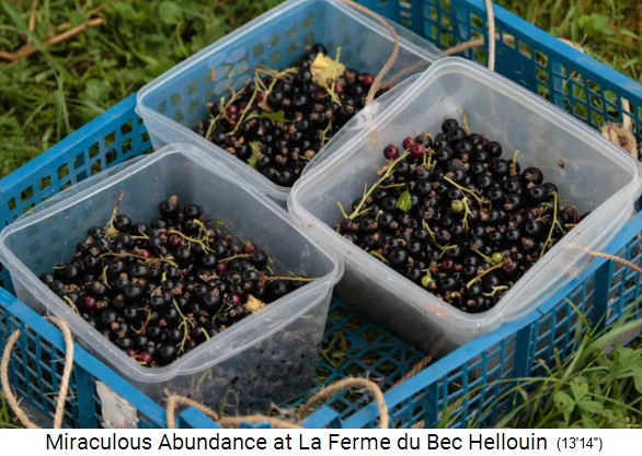 Bauernhof der Familie Hervé-Gruyer in Le Bec-Hellouin: Gemüseernte mit Karotten und Kräutern - Kirschenernte - Das Permakultur-Areal umfasst genau 1 Hektar