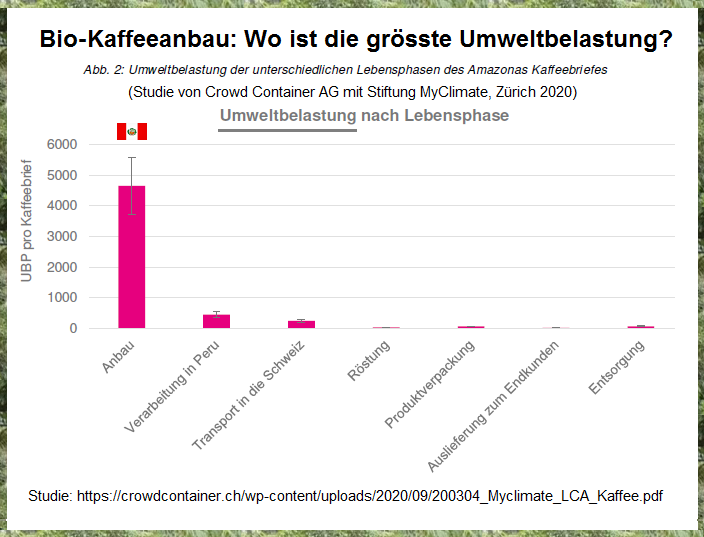 Die Firma Crowd Container AG (Zürich) führte zusammen mit der Stiftung "Myclimate" (Zürich) eine grosse Studie durch mit dem Vergleich von Aufwand und Umweltbelastung bei der Produktion von Kaffee