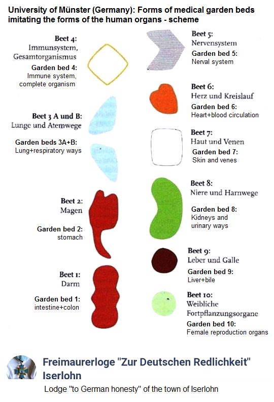 The visit to the medicinal plant garden in Münster, title page: Medicinal plant garden of the Institute for Pharmaceutical Biology and Phytochemistry of the Westphalian Wilhelms University of Münster (FRG) [100] - Garden beds in the form of human organs 03: The garden beds graphics [101]