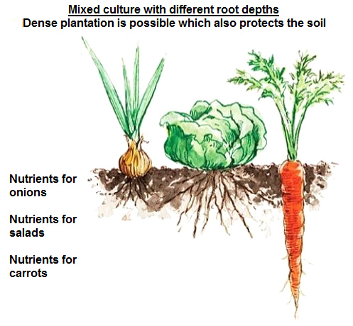 [12] Mixed culture with schemes of roots with onions, salads and carrots: https://www.pinterest.de/pin/400257485615397831/