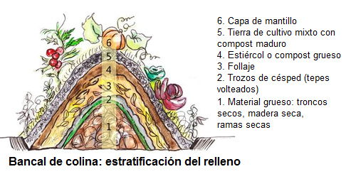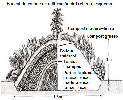 Agricultura permacultura biológica 04a.3: Bancal elevado  - bancal de colina - estratificación