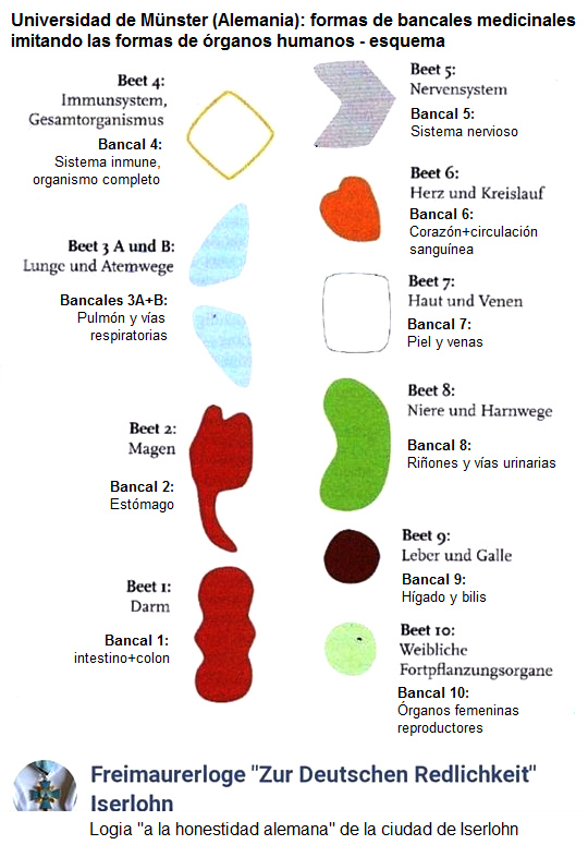 La visita al jardín de plantas medicinales en Münster, portada: Jardín de plantas medicinales del Instituto de Biología Farmacéutica y Fitoquímica de la Universidad Wilhelms de Münster de Westfalia (FRA) [100] - Jardines en forma de órganos humanos 03: Los macizos del jardín, esquemas [101]