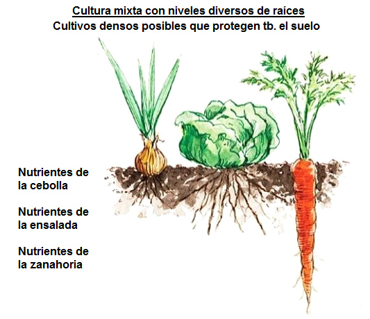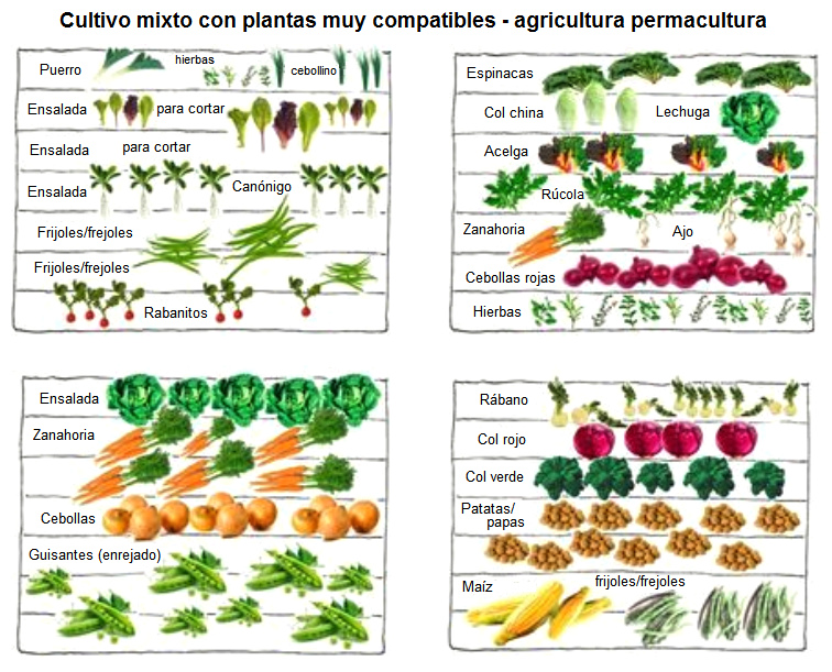 Las verduras crecen de manera diferente - consumen nutrientes de manera diferente - se ayudan mutuamente siendo combinados correctamente