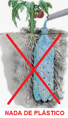 Los fanáticos de las botellas de PET también pueden utilizar una botella de PET como tubería de riego [web01]. El único problema es que el plástico y los plastificantes acaban en el suelo, algo que hay que evitar absolutamente [4].