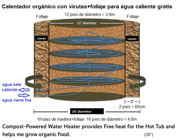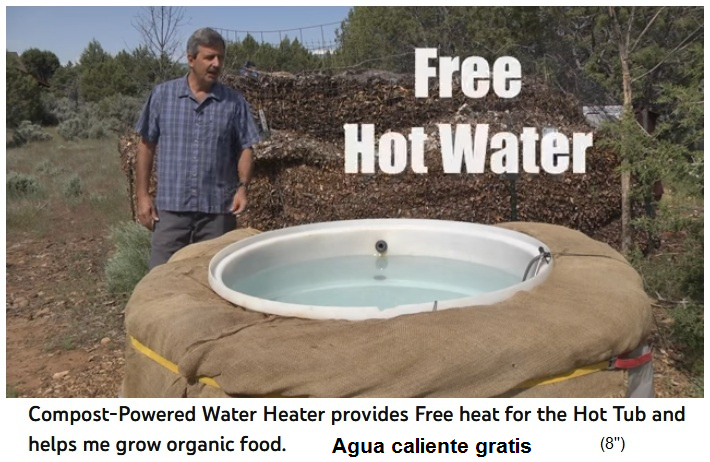 (orig. inglés: Compost-Powered Water Heater provides Free heat for the Hot Tub and helps me grow organic food: