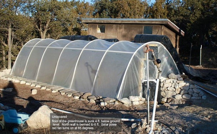 Invernadero adjunto medio subterráneo con un techo de media U por el Sr. Rob Stout, Embudo, Nuevo México ("EUA") [9]