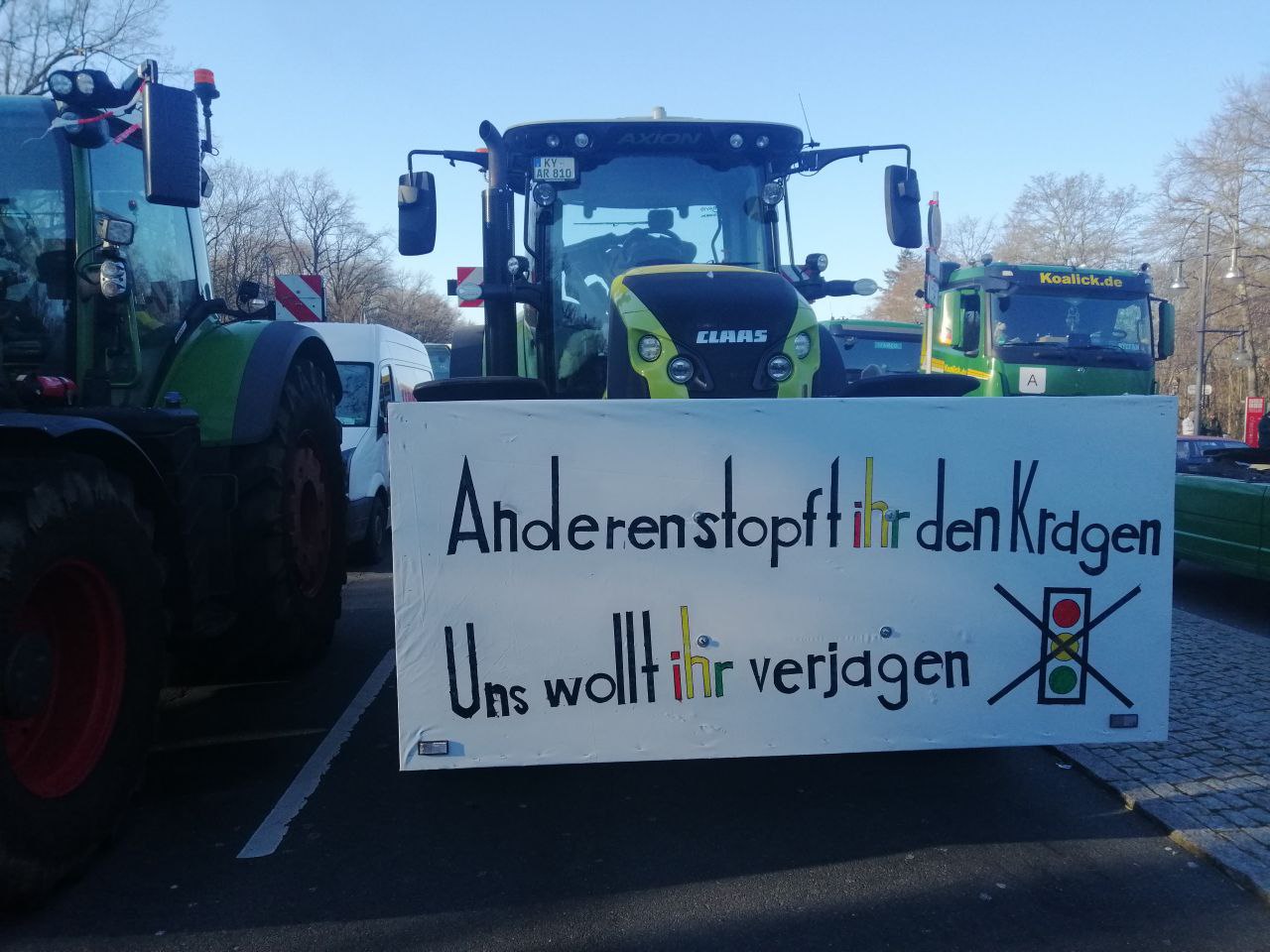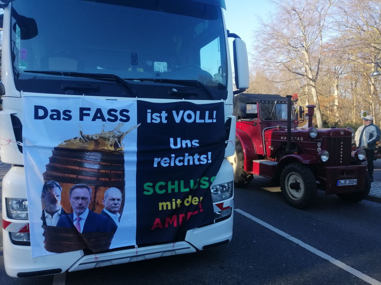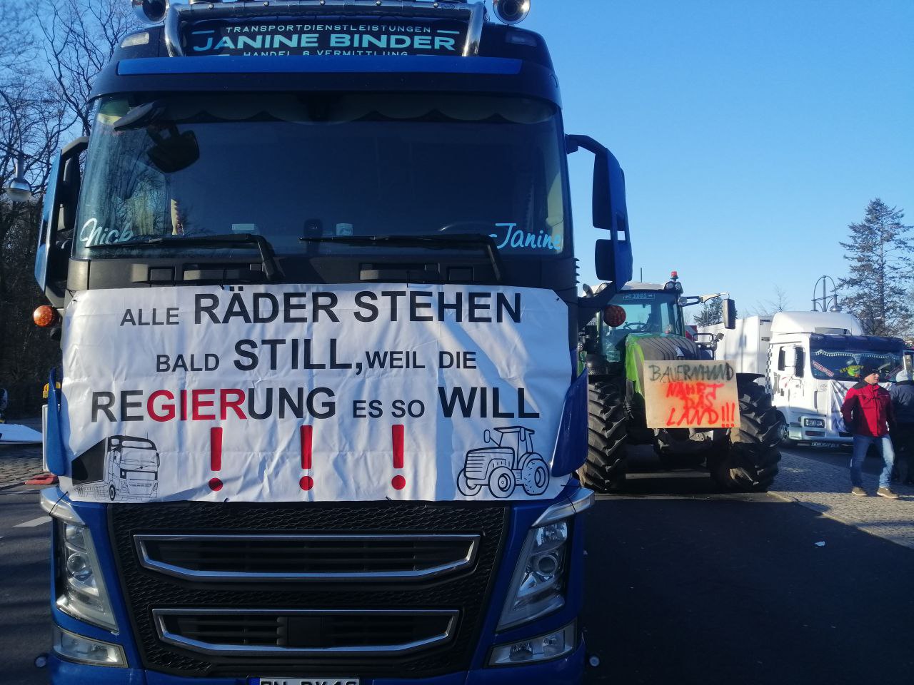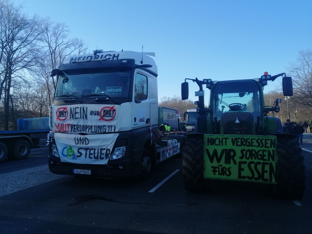Lastwagen-proteste sind, aber das mit den Bauern scheint