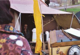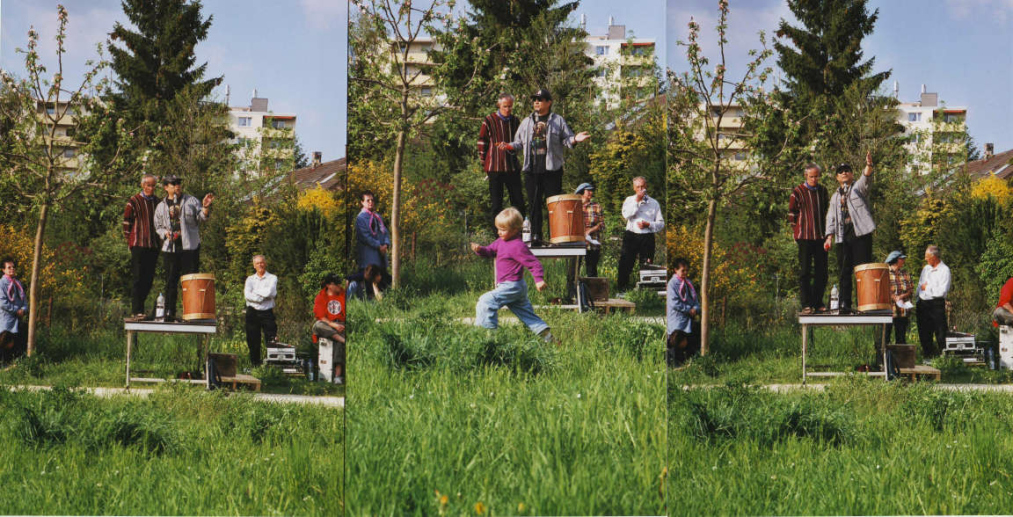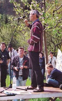 Martin Vosseler hielt eine grosse Rede gegen die unsinnige Verkehrspolitik der katholischen Regierung von Baden-Württemberg (Freiburg i.Br.) und der nichtwissenden schweizer Regierung, die beide diesen wertvollen Ort mit einer Strasse zerstören wollten. Gleichzeitig war hier ein deutscher Fotograf, der nicht auf die Texte von Vosseler achtete, sondern dem vor allem auffiel, dass Vosseler Sandalen und keine Socken anhatte. Das fand der Fotograf derart sensationell, dass er gleich mehrere Fotos von Vosselers Füssen in Sandalen knipste. Nun, immerhin hatte der Fotograf ja wirklich etwas bemerkt: Um natürlicher zu leben, sollte man mehr barfuss laufen, oder zumindest ohne Socken.