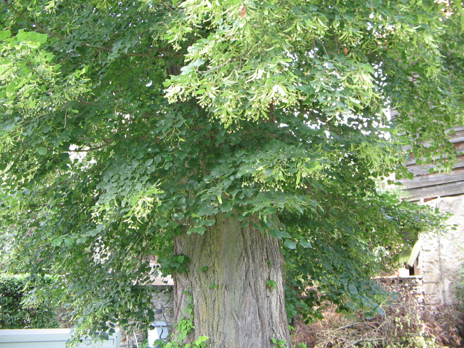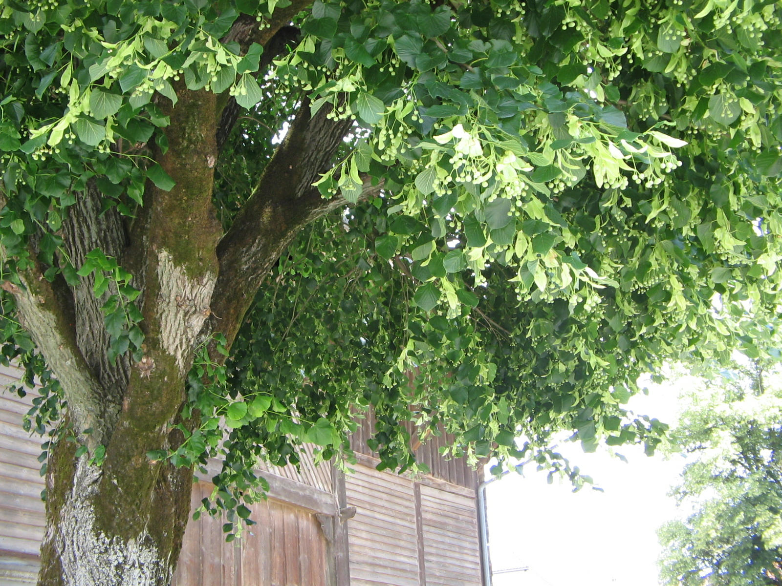 Route du Grand Chemin, grosse Linde, Laub, Samen und Rinde