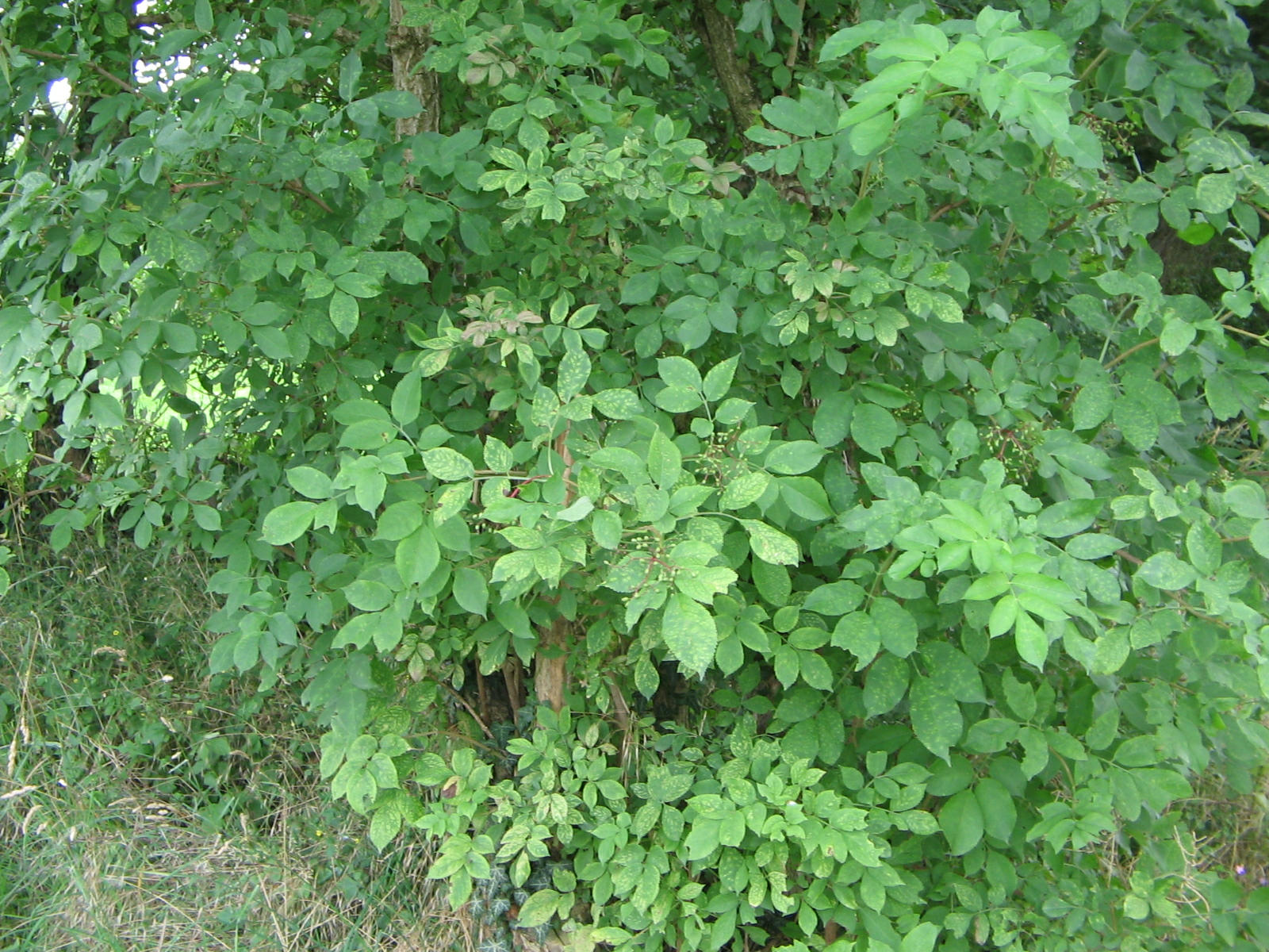 Eschen mit Holunder davor, Foto quer