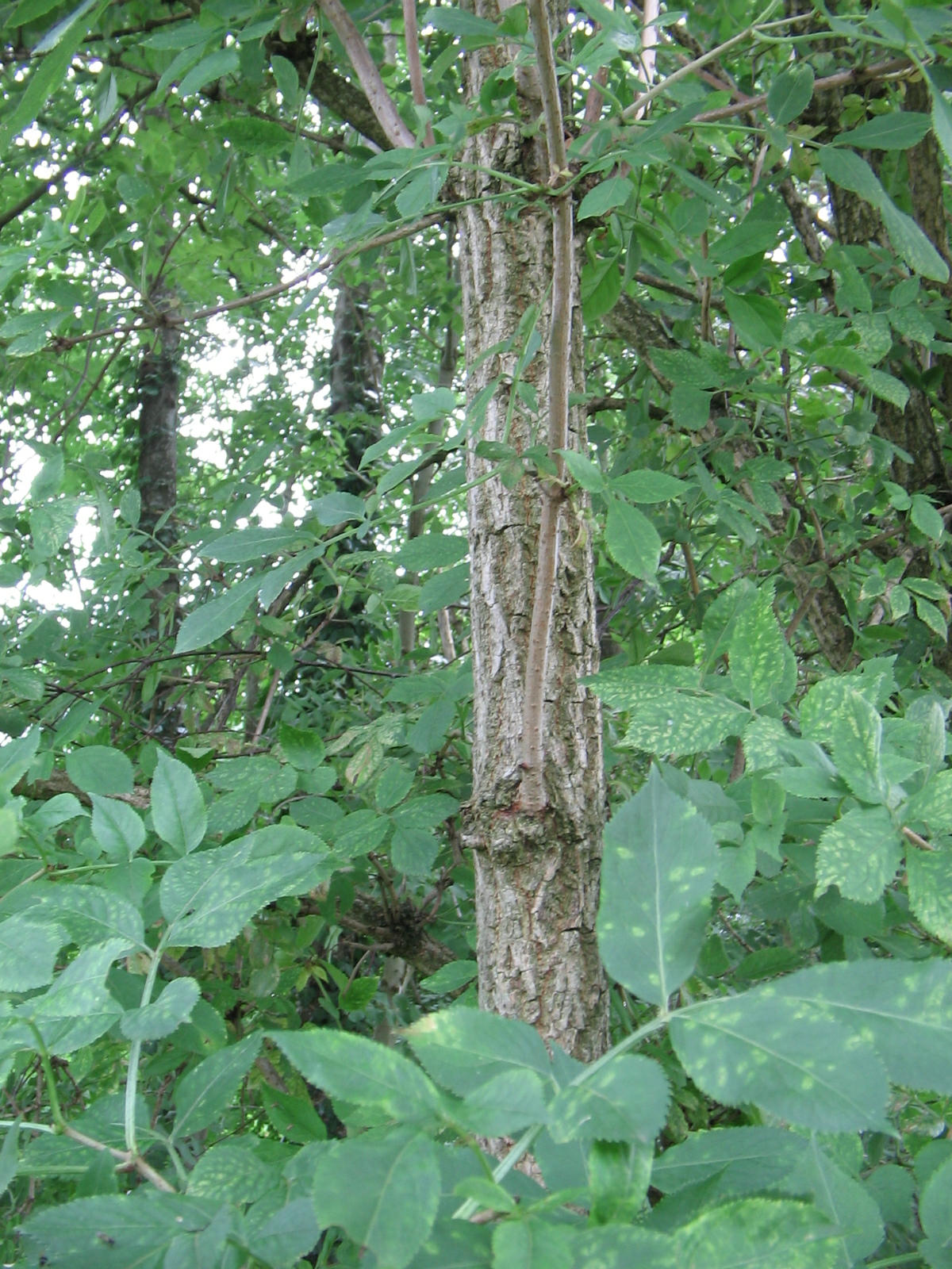 Rue des moulins, Eschen mit Holunder davor