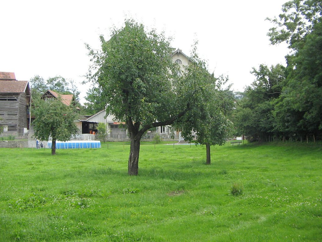 Rue des moulins, da stehen Apfelbäume auf einer Weide