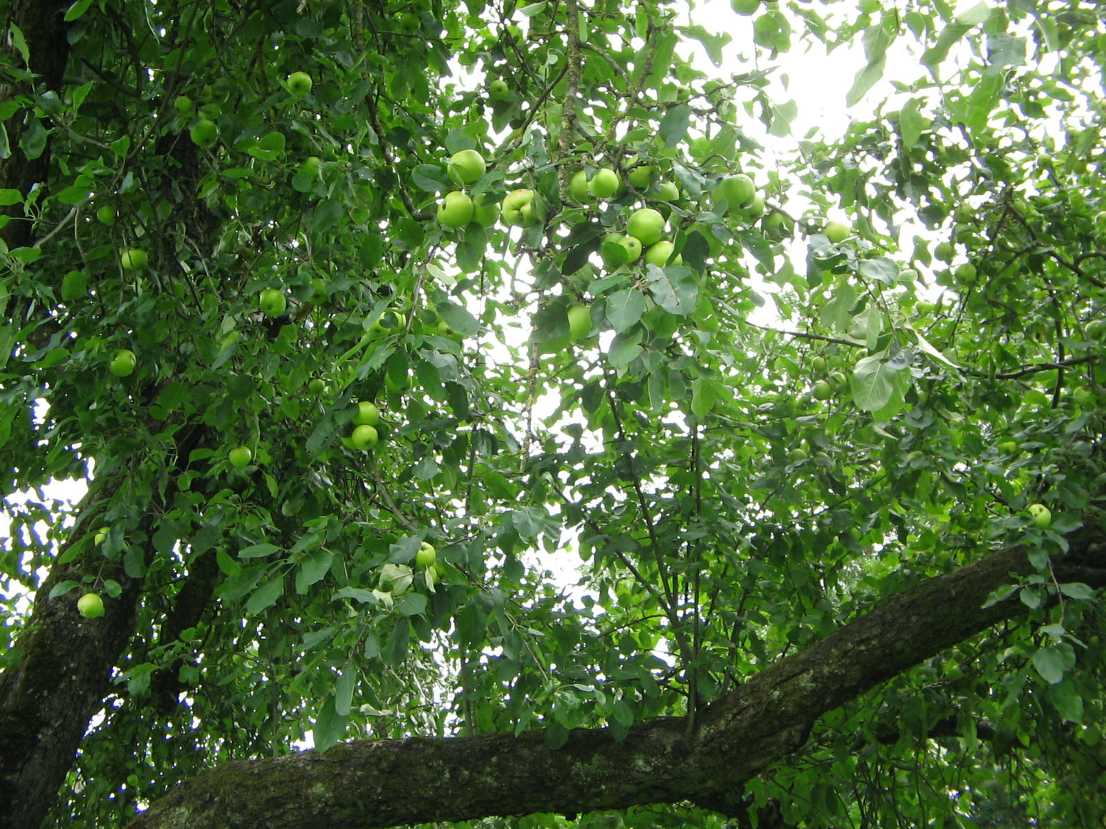 Apfelbaum, Laub mit grünen, noch unreifen Äpfeln