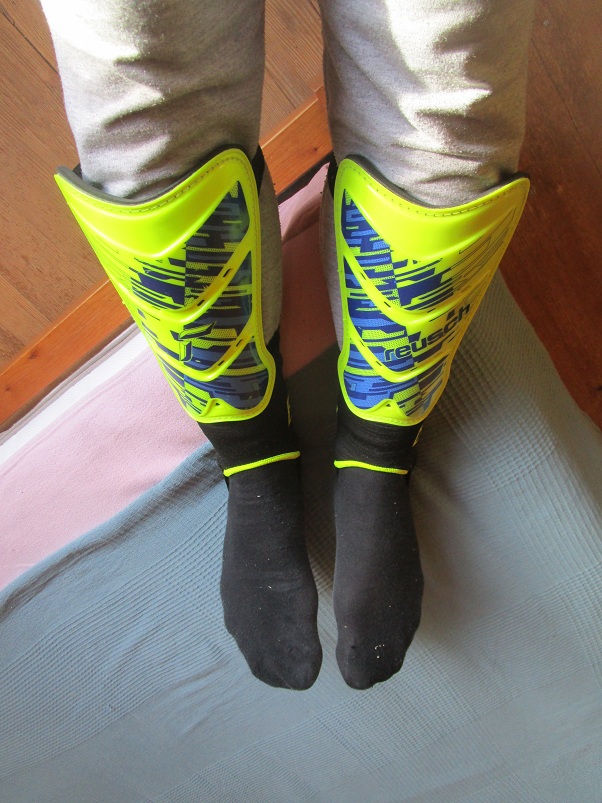 -- Schienbeinschoner an jedem Schienbein wie beim Eishockey (damit man sich auf der Leiter und im Baum freier ohne Schmerzen bewegen kann)