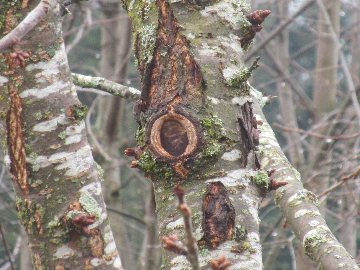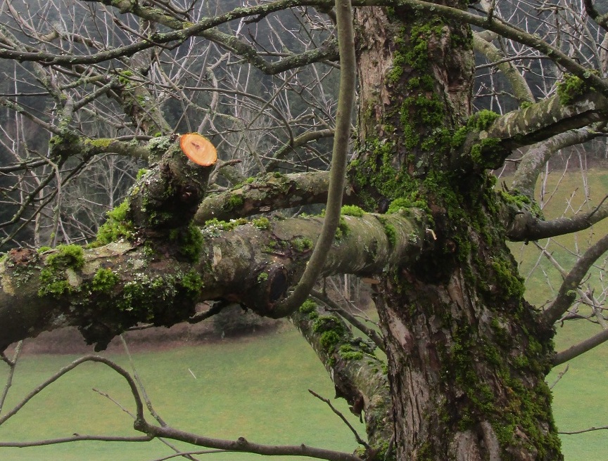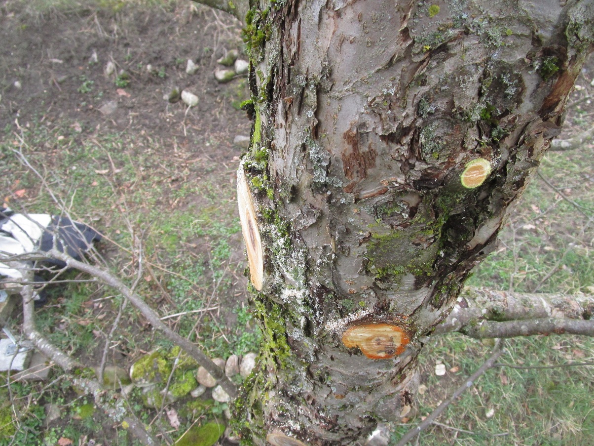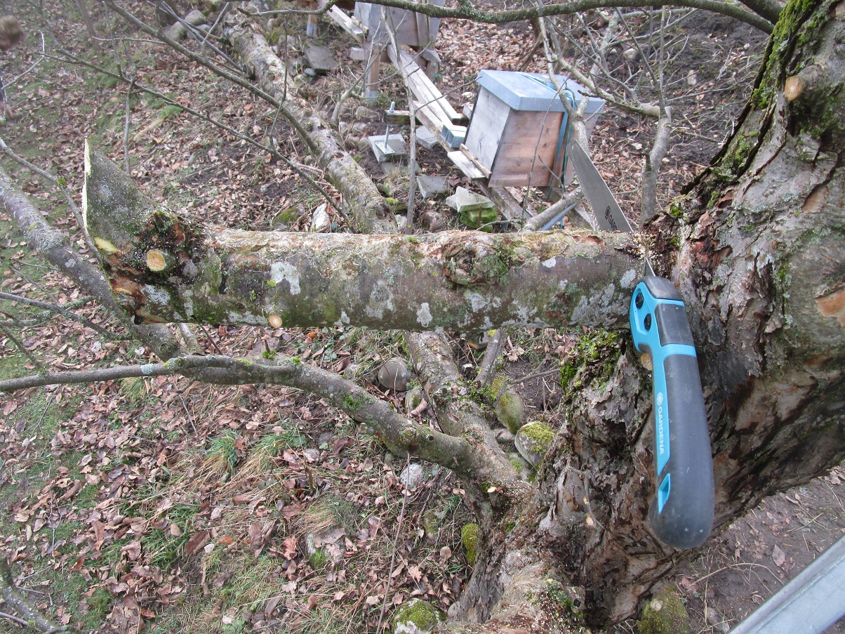 Lange nicht geschnittener Kirschbaum: Dann kam schwerer nasser Schnee und nun hängt ein Ast bis zum Boden, die Bruchstelle [44]