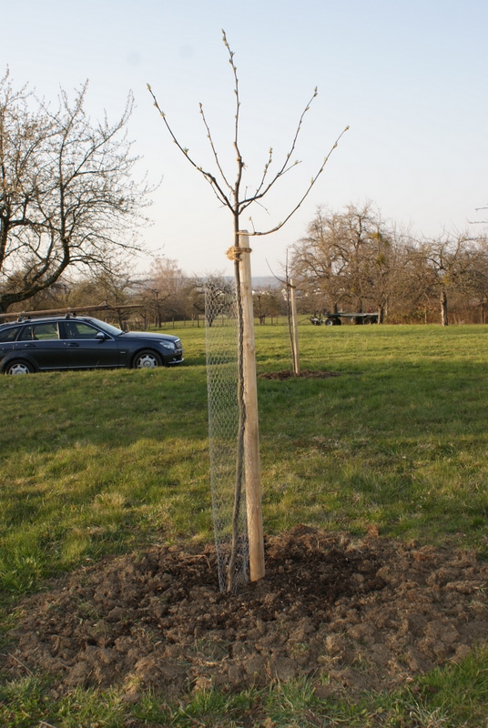 [33] Jungbaum mit Manschette und am Pfosten angeseilt mit einer 8: https://www.ogv-moessingen.de/post/jungbaumpflege/