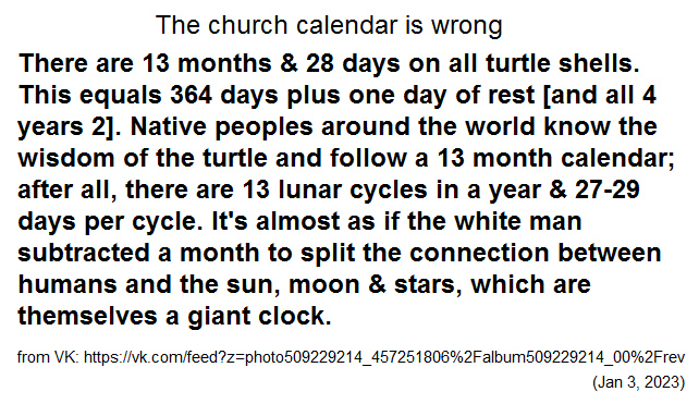 Jan 3, 2023: Lunar calendar with 13x28 days is on each turtle shell - photos with text horizontally [2]