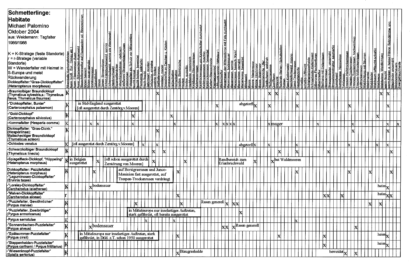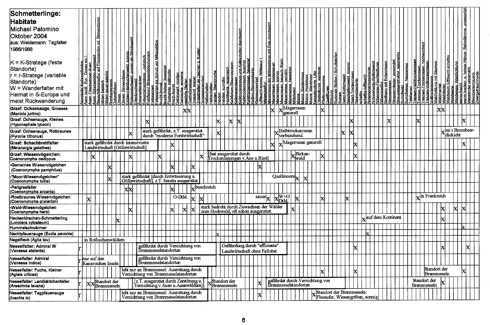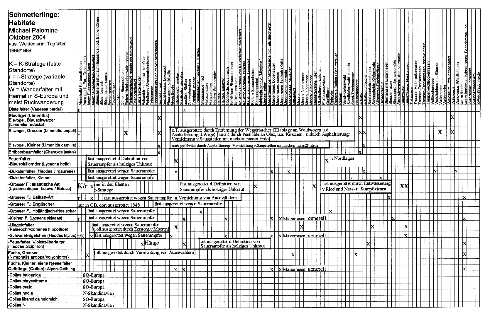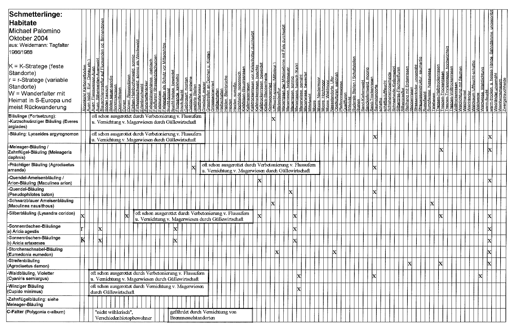 Schmetterlinge: Habitate Tabelle Seite 04 Schmetterlinge: Habitate Tabelle Seite 05 Schmetterlinge: Habitate Tabelle Seite 06