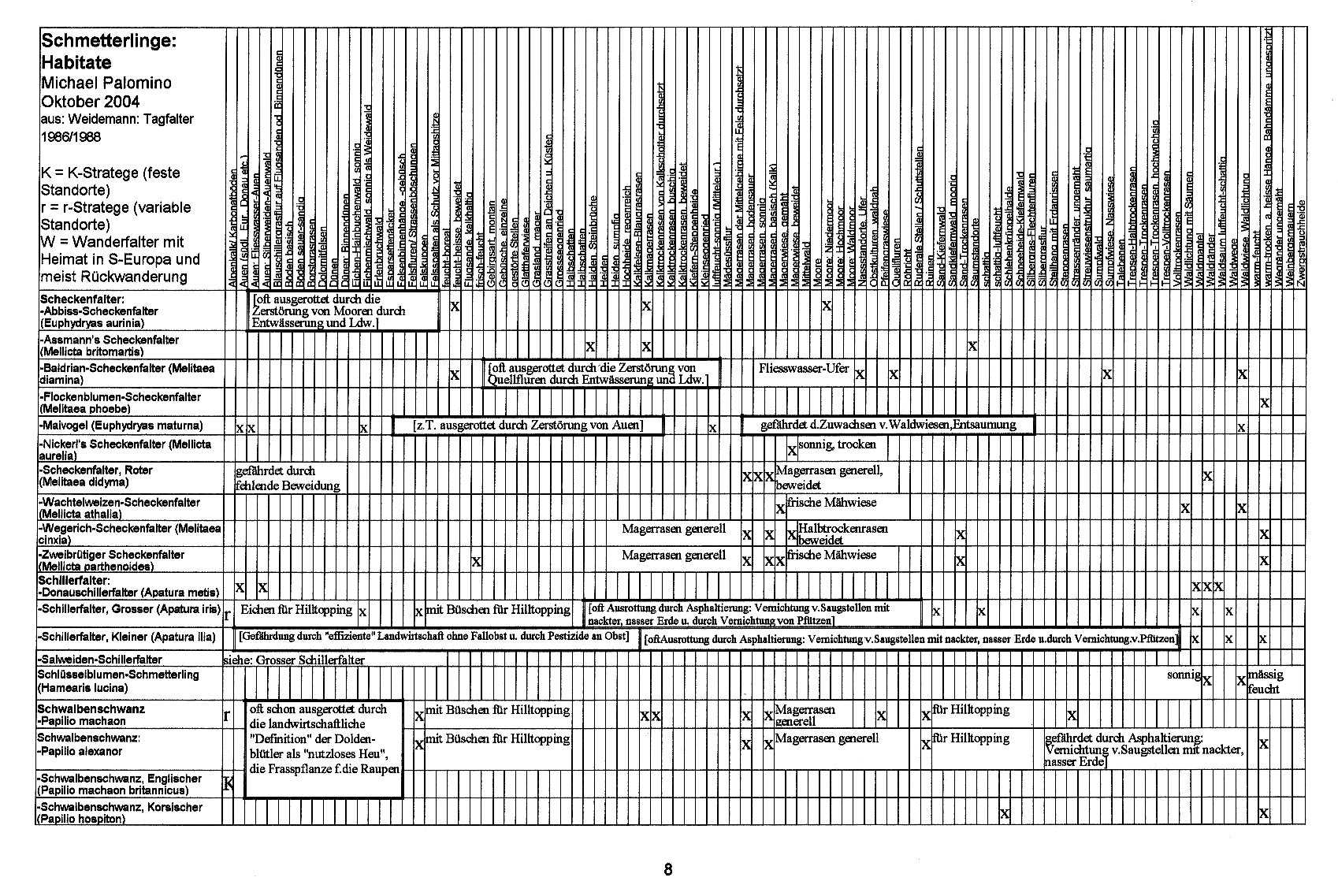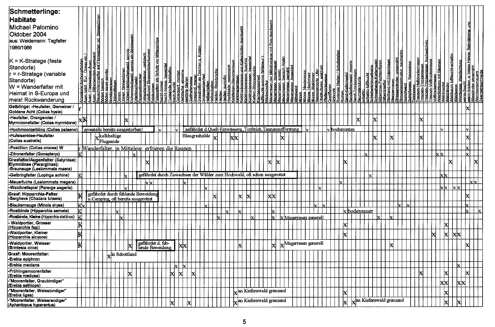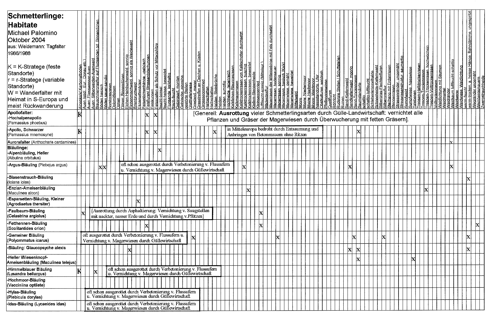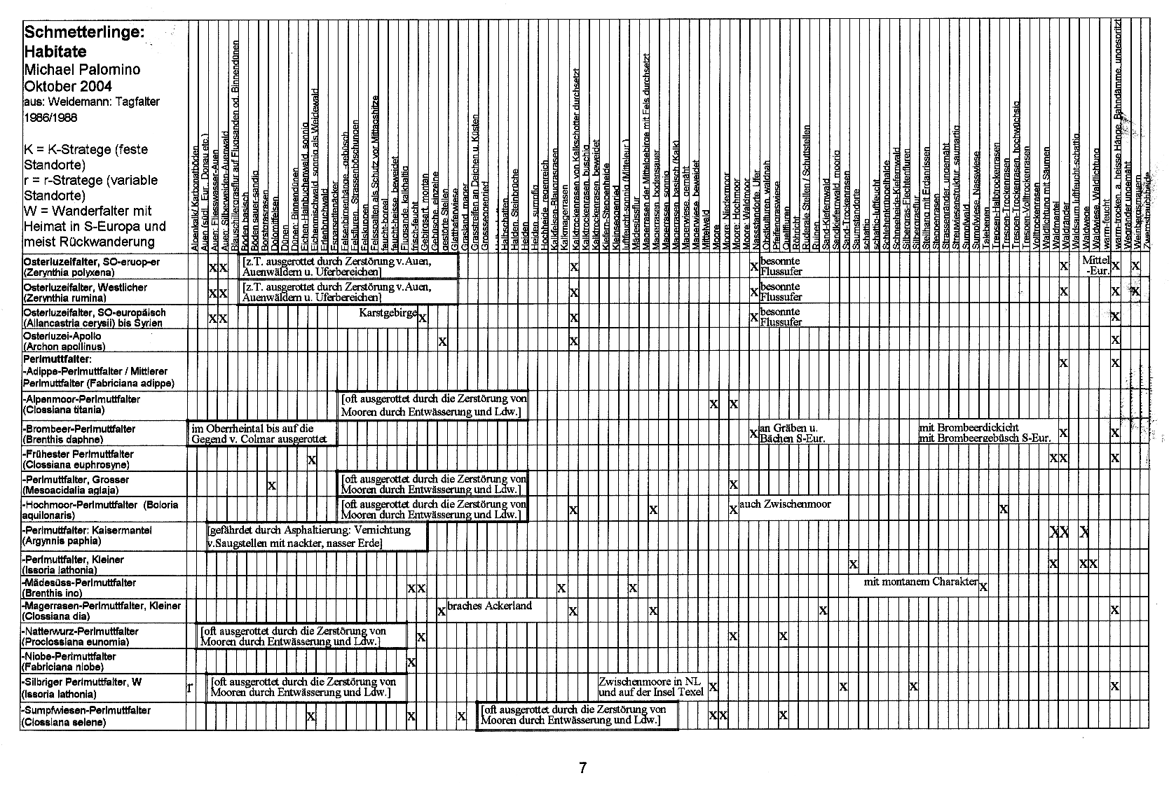 Schmetterlinge: Habitate Tabelle Seite 04 Schmetterlinge: Habitate Tabelle Seite 05 Schmetterlinge: Habitate Tabelle Seite 06