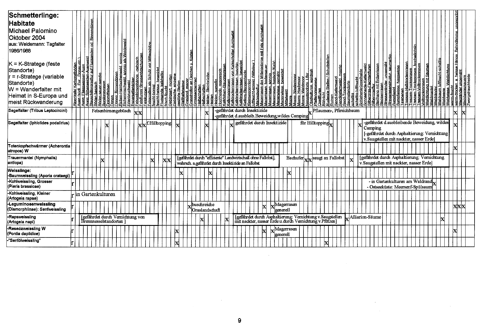 Schmetterlinge: Habitate Tabelle Seite 07 Schmetterlinge: Habitate Tabelle Seite 08 Schmetterlinge: Habitate Tabelle Seite 09