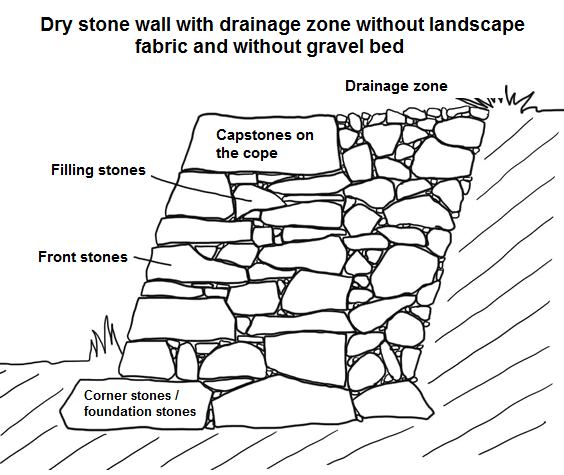 [44] The basement of a dry stone wall is filled with gravel: https://www.pinterest.de/pin/553590979187479240/