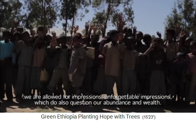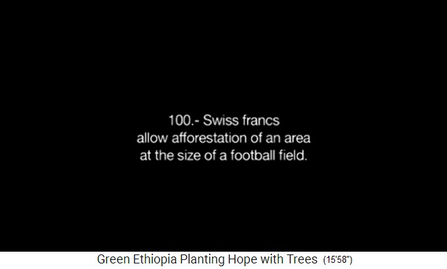 Nordland Film roja-media Productions präsentiert Green Ethopia. Planting Hope with Trees (18''). Musik: Fredrik Strömberg & H2U - Stimme Marcus Signer (28''). Kamera&Direktor: Luki Frieden / Jan Mühlethaler (30'').