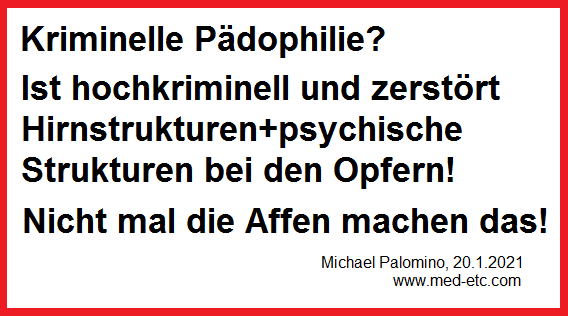 [2] Text: Kriminelle Pädophilie ist hochkriminell+zerstört Hirnstrukturen und psychische Strukturen - nicht mal die Affen machen das: Text von Michael Palomino 20.1.2021