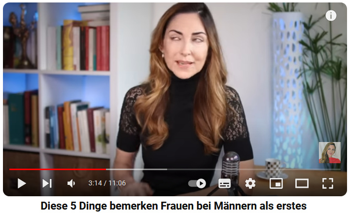 -- die dummen Frauen unterscheiden "aufrichtiges Interesse", "unpräziser Blickkontakt", "schaut der Kerl mir beim Kommunizieren nie richtig in die Augen?" - "weicht meinem Blick aus?" - schweift der Blick in der Öffentlichkeit immer wieder ab und scannt den Raum? Der abschweifende Blick das findet Tamara Wernli total unsympathisch, kann Unsicherheit bedeuten, das interpretiert Tamara Wernli aber auch als "grossspuriges Auftreten", "übermütig", es zeigt an, dass die Frau nicht wichtig genug ist oder dass der Mann nicht bei der Sache ist oder dass die Frau nicht interessant genug ist (4'4'') "alles schon erlebt" (4'8'') und wenn so was vorkommt, da ist Tamara Wernli sehr vorsichtig (4'10'')