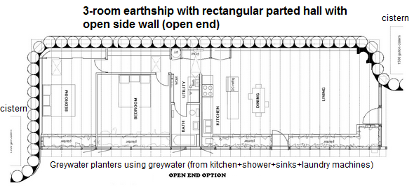 [26] 3-room earthship with rectangular hall and open side wall (open end): https://www.arch2o.com/earthships-michael-reynolds/