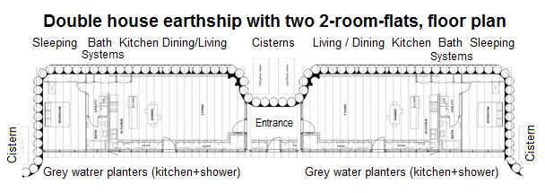 [27] Earthship double house with two 2-room apartments, floor plan: https://www.arch2o.com/earthships-michael-reynolds/