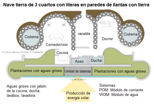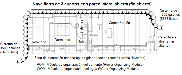 [8] Diseño interior de una nave tierra con cisternas en los lados: https://offthegridonthegrid.wordpress.com/case-studies/earthship/