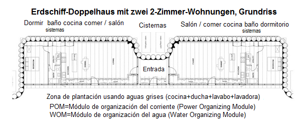 [27] Nave tierra como casa doble con dos apartamentos de 2 habitaciones, plano: https://www.arch2o.com/earthships-michael-reynolds/