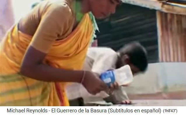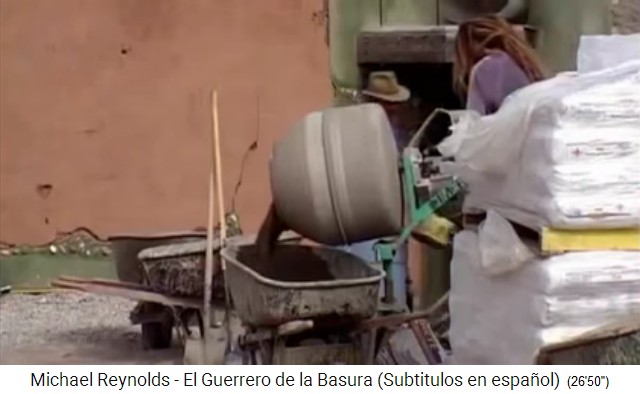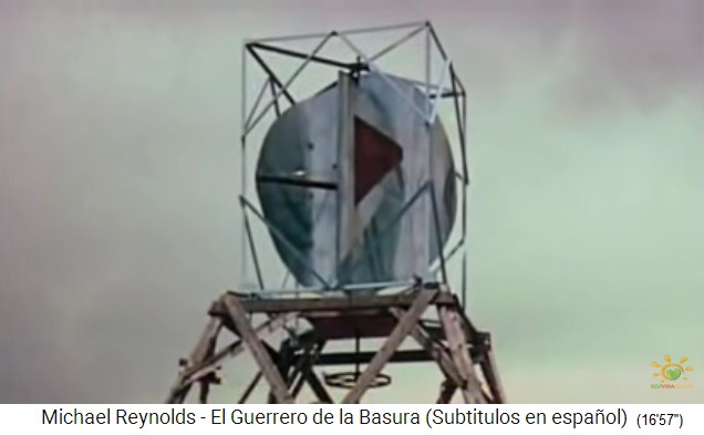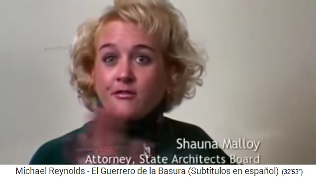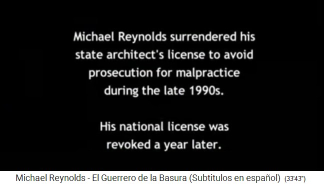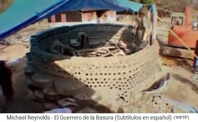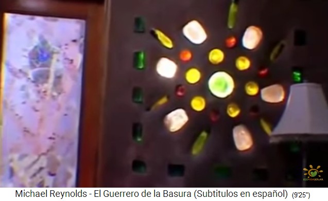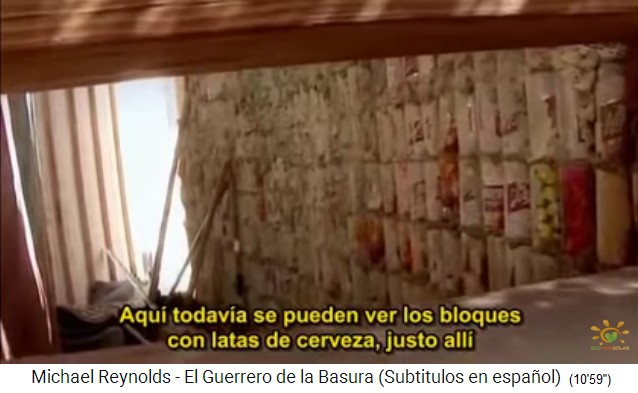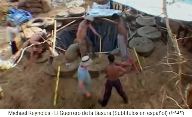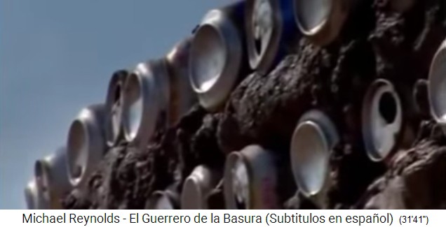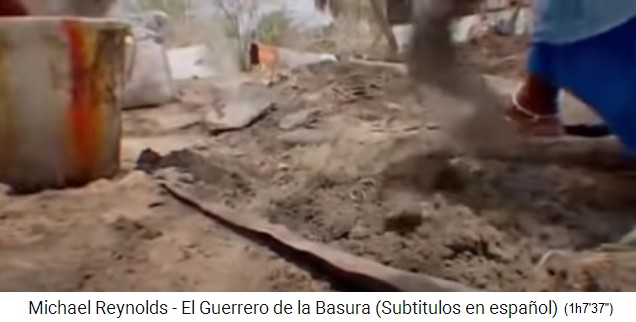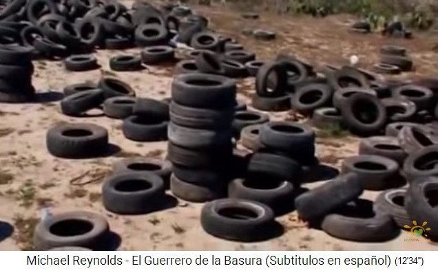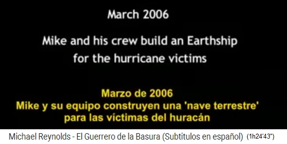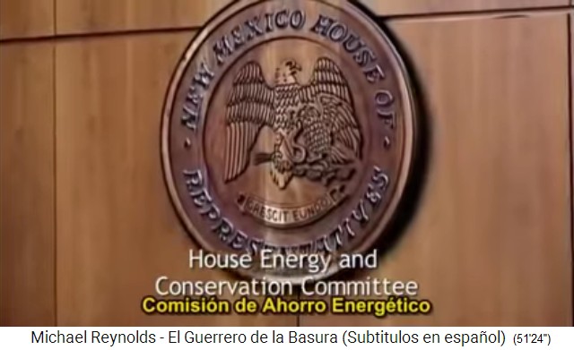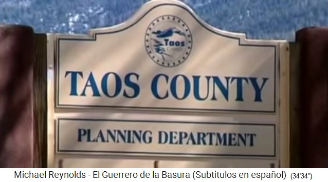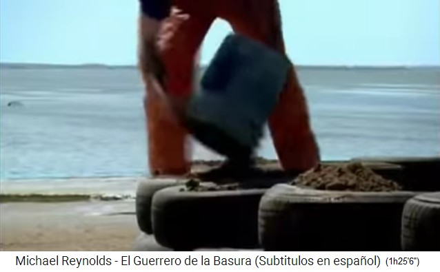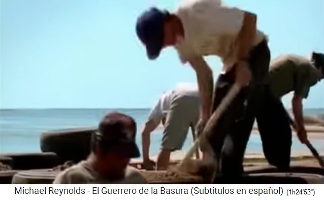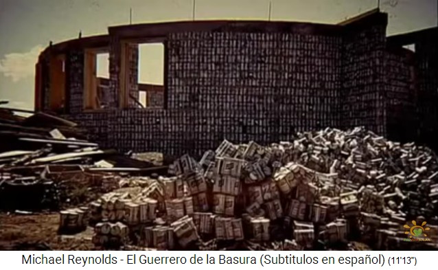 Guerrero de la basura, película de Oliver Hodge (2'0''). Michael Reynolds vive en una nave tierra de Taos en Nuevo México, su compañera lo describe como creativo y obstinado (2'55''). Michael Reynolds fue educado como bautista, todo estaba prohibido, por lo que surgió la reacción (3'9''). Estudió arquitectura en la Universidad de Cincinnati y consideró que la arquitectura indoctrinada enseñada como sin valor (3'35''), porque esta arquitectura no tenía nada que ver con el planeta y poco con los humanos. (3'40'').