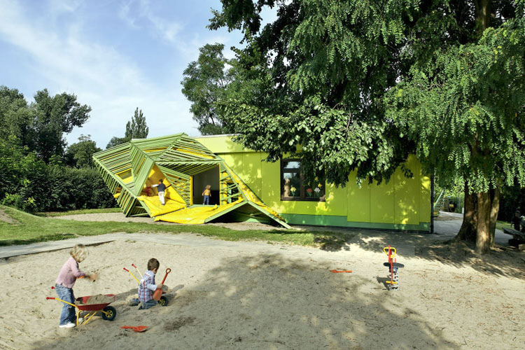 So wurde die Berliner Kindertagesstätte "Taka-Tuka-Land" vom öden Plattenbau zum Zuhause des "Limonadenbaums". Sie bekam durch asymmetrische Einbauten und Sitzhöhlen einen verwunschenen Charakter, ebenso wie die Kita "Traumbaum". Das Vorzeigeprojekt der Baupiloten ist die Erika-Mann-Schule im Berliner Problemkiez Wedding - mit recht geringen Mitteln wurde aus langen, öden Fluren eine farbenfrohe Fantasiewelt.