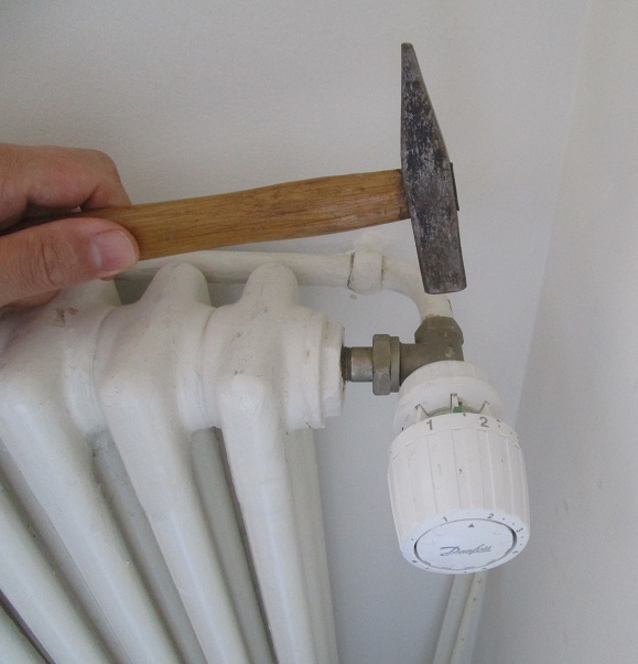 Das verklemmte Stiftchen lösen Methode 2: Hammer und Vibration: löst das Stiftchen: am Rohr hinter dem Thermostatventil mit einem Hammer klopfen