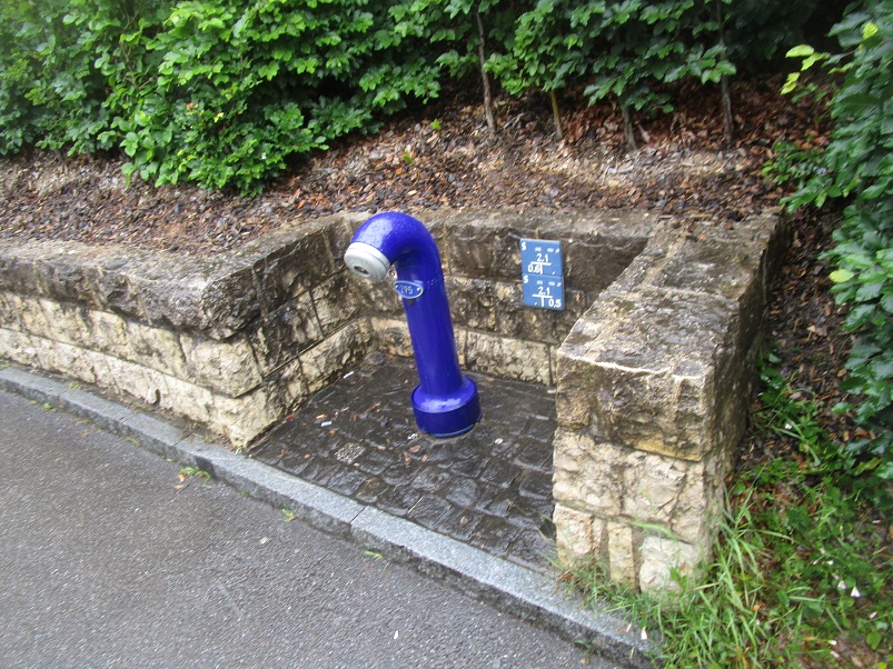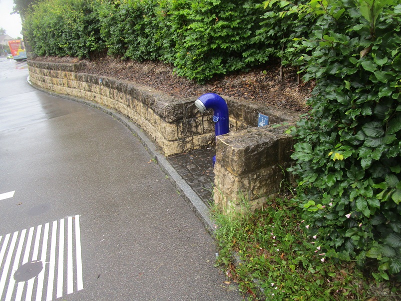 Es war ein Regentag am 3.Juli in Allschwil: da kann man Hydranten finden, die in die Gartenmauer versenkt sind - gescheit!