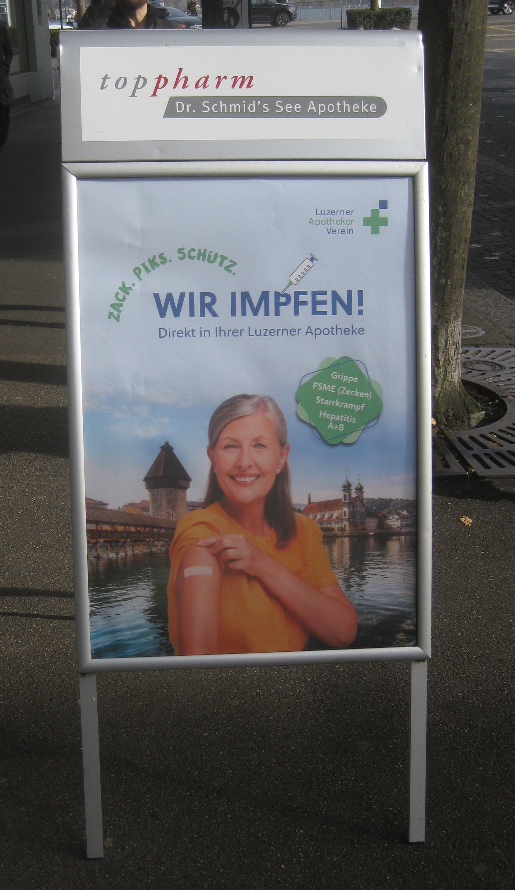 Gaga-Plakat der See-Apotheke in Luzern "Wir impfen" [7]
