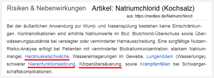 [5] Lexikon Natriumchlorid Kontraindikationen: https://medlexi.de/Natriumchlorid