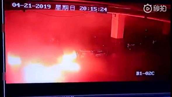 Parkhaus in Shanghai: Parkierter Tesla Model S brennt in Tiefgarage, weil sich die Lithium-Batterie entzündet, 21.April 2019