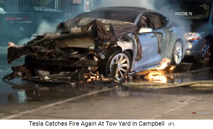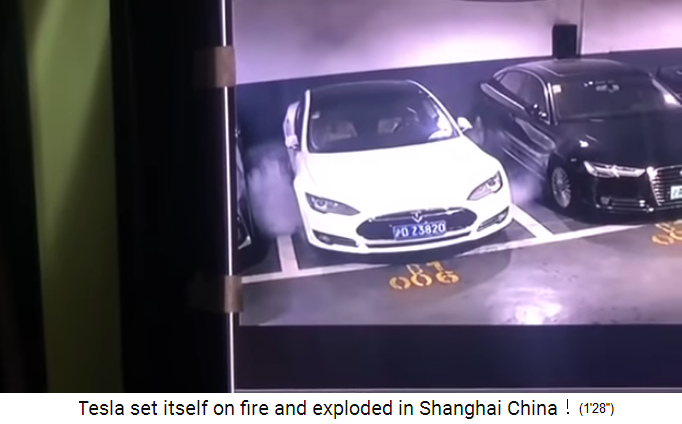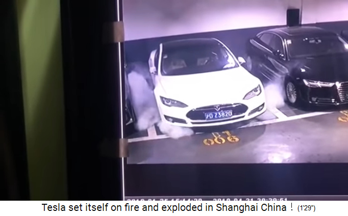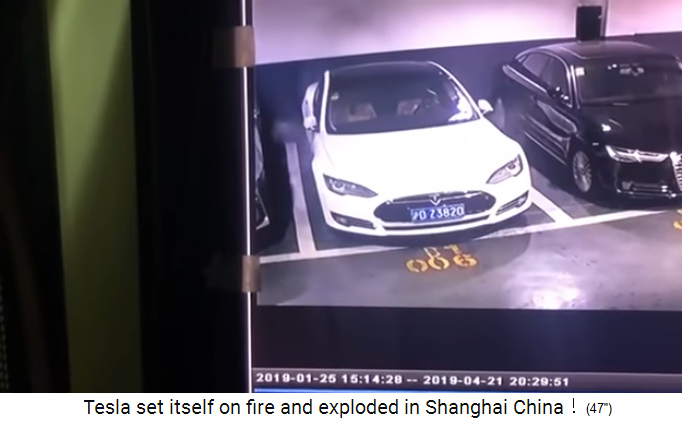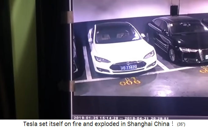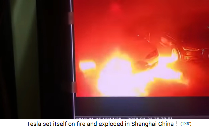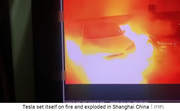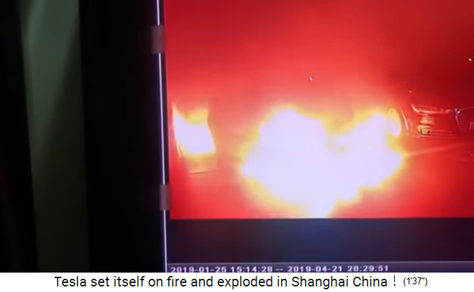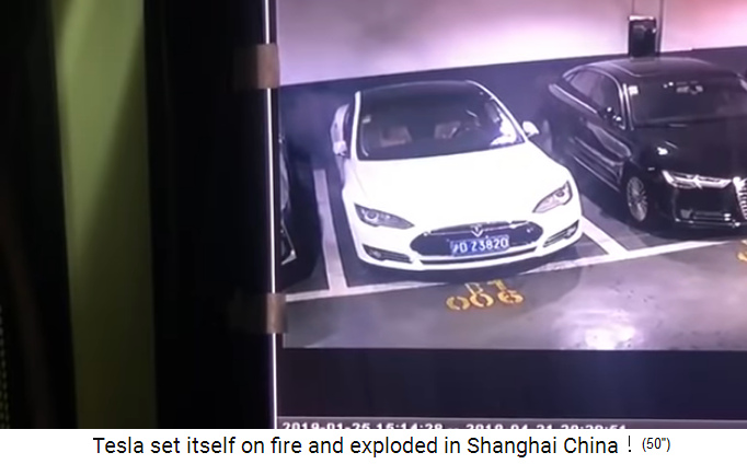 Tesla-Batterie entzündete sich während der Fahrt in Los Angeles am Santa Monica-Boulevard, 18.6.2018 [7] - Tesla explodiert in Shanghai in einer Tiefgarage 22.4.2019 [20]