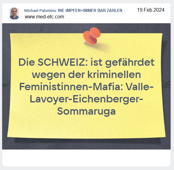 Schweiz am 19.2.2024: Kriminelle Feministinnen an Schaltstellen zerstören die Schweiz mit falschen Prioritäten: Agota Lavoyer, Eva Eichenberger, Nicoletta della Valle, und wahrscheinlich auch Frau Sommaruga [1]