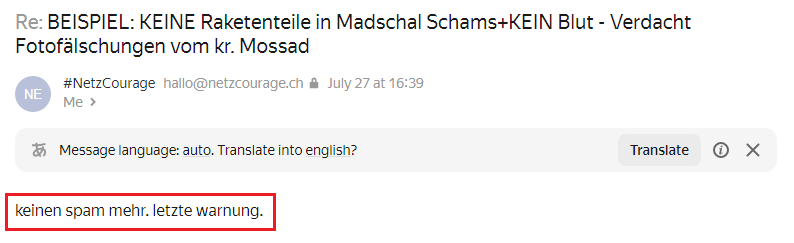 SMS von Michael Palomino NIE IMPFEN an Informant Schaffhausen - 7.12.2023