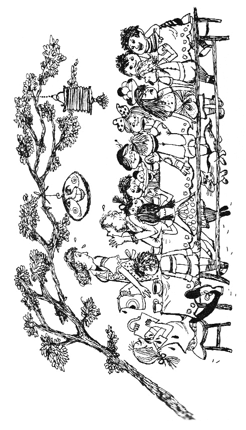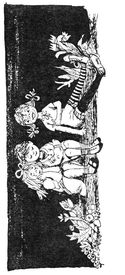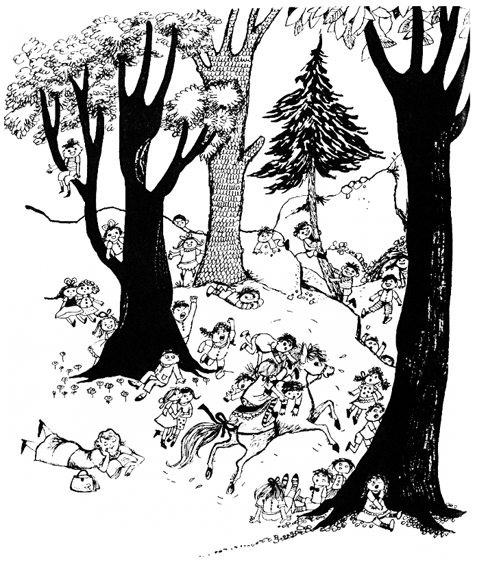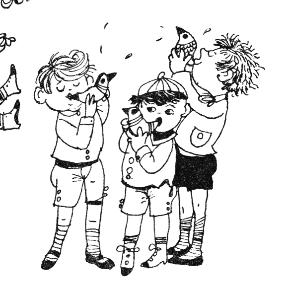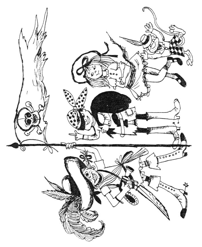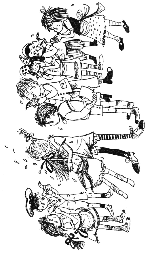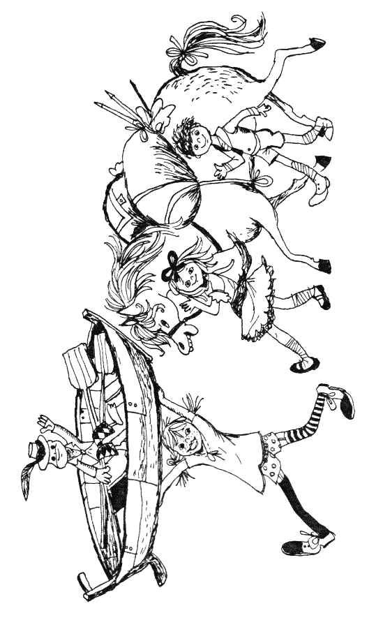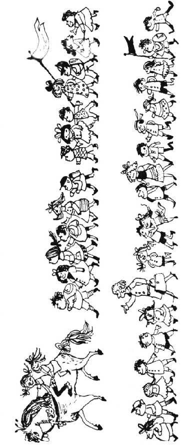 Pippi, Thomas, Annika and Mr. Nilsson are marching